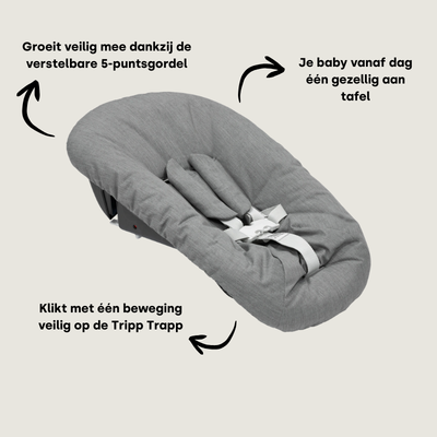 Do you have the Tripp Trapp chair at home and do you want a newborn set for your baby? We get it, because it's very nice to have your baby at the table while eating. You can click the Newborn set on the Tripp Trapp chair with one action.