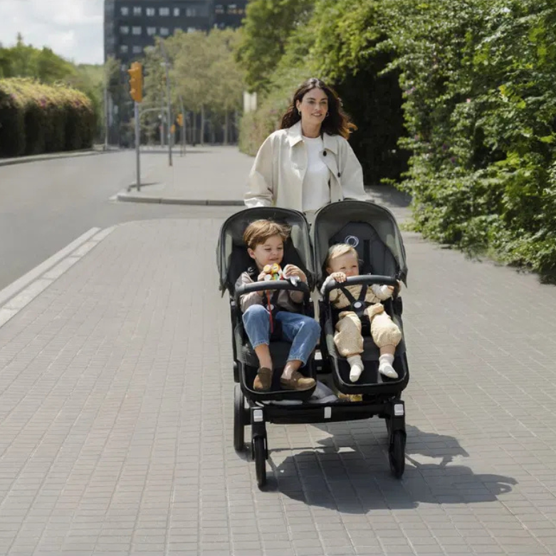 The Bugaboo Donkey5 has room for not one, but two children, ideal for twins! The seat of the stroller is reversible and has an adjustable backrest. This way your babies are always wonderfully comfortable and you can decide which way they look. The Bugaboo Donkey5 Duo is very practical to use because the stroller has a small turning circle and is therefore very manoeuvrable. The stroller is also narrower than you would expect. The stroller comes with 2 seats. Are you looking for a duo stroller with two cradles or a combination? Then check out the Donkey 5 TWIN cradle or the Donkey 5 DUO.