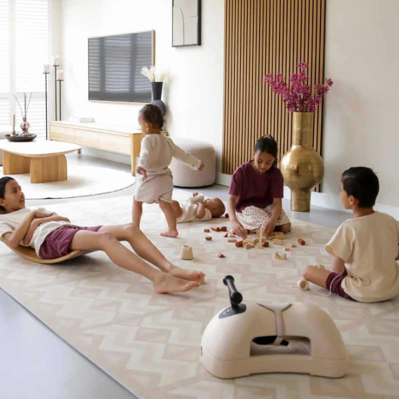 The top-quality Eeveve play mat supports your child through every growth stage. Perfect for tummy time, learning to roll, sit, and crawl, but also as a safe play surface for climbing frames or slides. Its timeless design makes it a stylish addition to any interior. Thanks to the modular puzzle pieces, the mat is easy to store, and it's also compatible with underfloor heating.