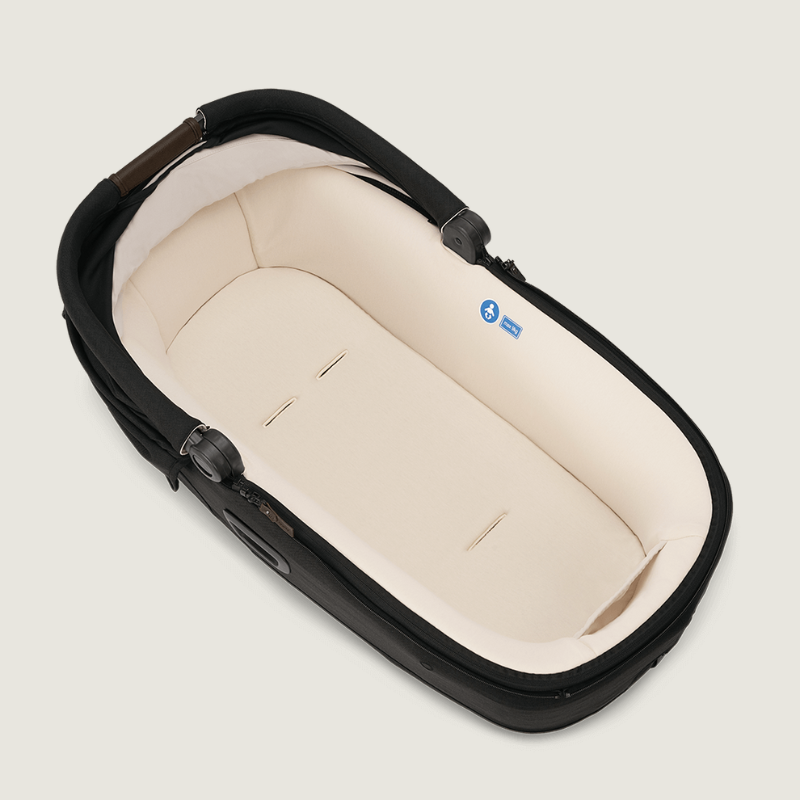 You'll notice the comfort immediately. The soft insert fills the space around your baby, so they lie securely and feel safe during the first few months. As your baby grows, you can easily remove the insert. The large sun canopy protects against sun and irritation, while the breathable materials create a comfortable environment. Thanks to the soft fabrics and comfortable mattress, your baby can sleep peacefully anywhere.