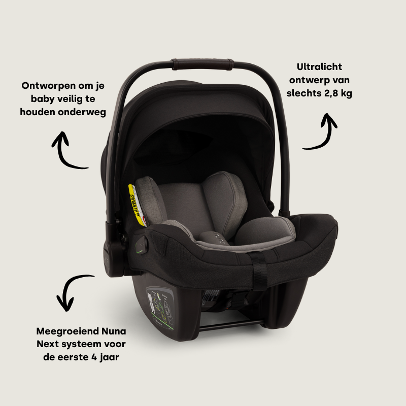 The Nuna PIPA next car seat also gives you maximum peace of mind when it comes to safety. Soft, protective materials around the seat help absorb impacts in the unlikely event of an accident, while the sturdy handle provides extra protection for your baby's delicate head.