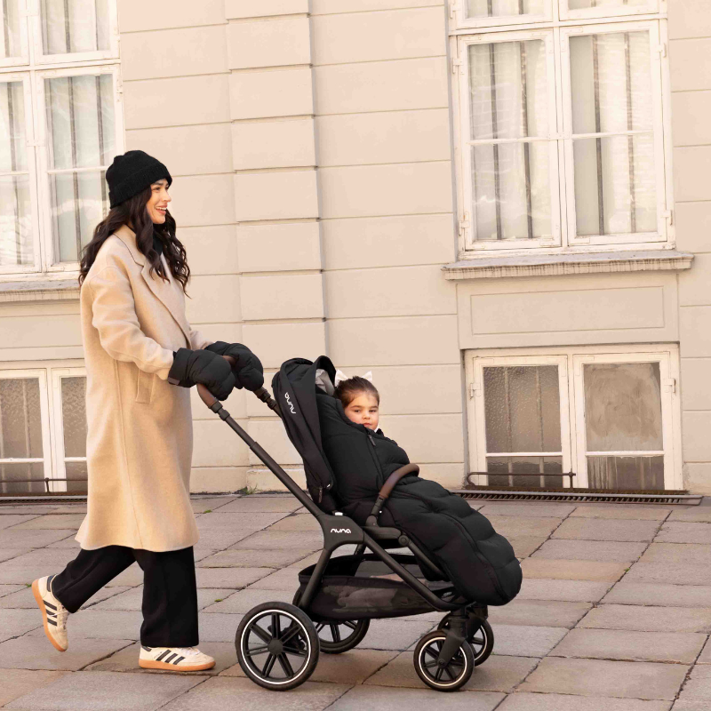 We've even thought of you as a parent: the comfortable mittens attach magnetically to the stroller's handlebar, so you'll always have them within reach. After use, simply click them together and store everything neatly in the included storage bag. Practical, safe, and stylish – exactly what you expect from Nuna.