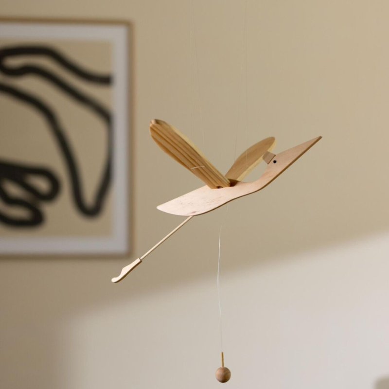 The graceful Mini Seagull sways subtly and brings a dreamy atmosphere to the room. The timeless wooden design fits perfectly in any nursery.