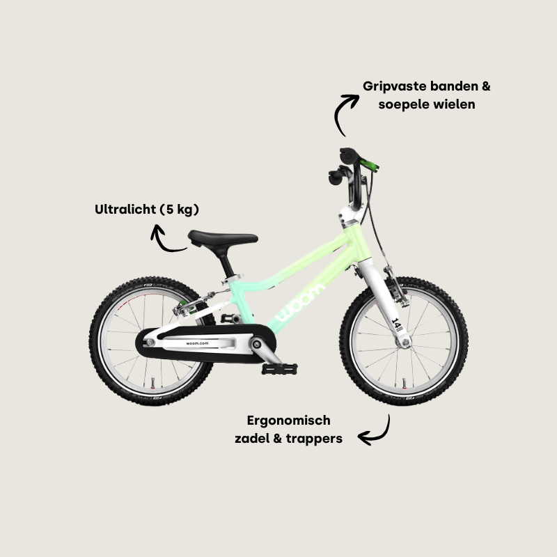 The Woom 2 makes the transition smooth for children from around the age of three who are ready for their first real bike after the balance bike. Training wheels? Those days are over! Children quickly pick up essential cycling skills: pedaling, balancing and steering are almost automatic. This Woom Go 2 bike transforms an important developmental moment into something magical!