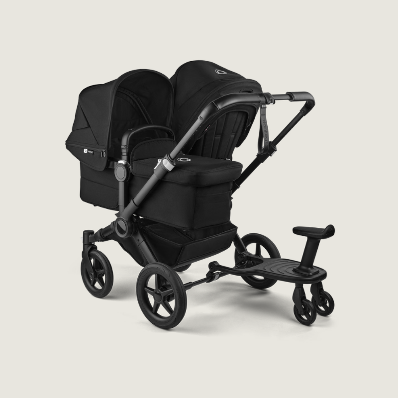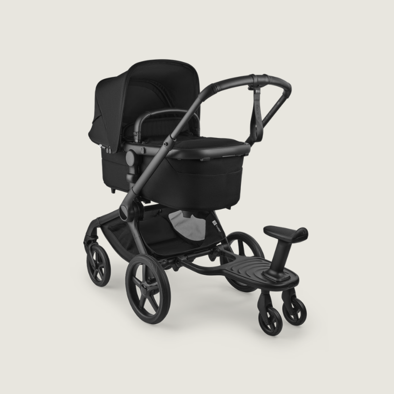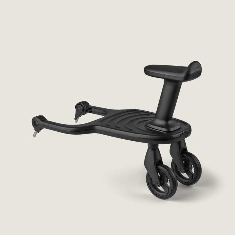 Wanneer lange wandelingen leiden tot vermoeide voetjes, kan je peuter eenvoudig op het Bugaboo Meerijdplankje springen en met je meegaan. Dit plankje is ontworpen om jou en je kleintje meer comfort en vrijheid te geven tijdens je dagelijkse uitstapjes. Het is eenvoudig te bevestigen aan alle Bugaboo kinderwagens en biedt extra stabiliteit dankzij de twee wielen. Dankzij de afneembare stoel kan je kindje zowel staan als zitten – ideaal voor die momenten wanneer je peuter even wat meer rust nodig heeft.