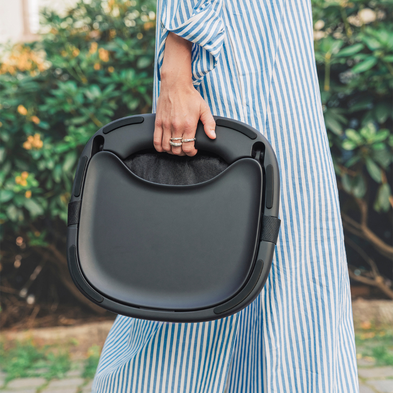 Hannie Draagbare Kinderstoel en beschermende draagtas.