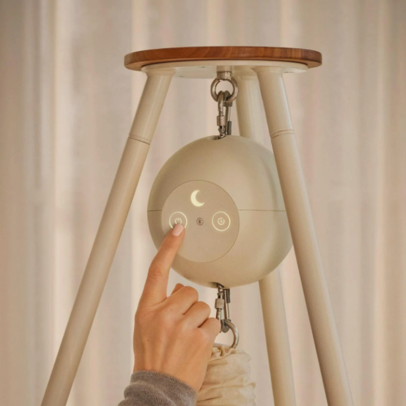 De wieg dempt geluiden van buitenaf waardoor het gevoel van de baarmoeder wordt nagebootst. Het tijdloze Scandinavische design van deze Moonboon past in elk interieur. De wieg is gemaakt van biologisch katoen met GOTS-keurmerk. De schommelmotor kan zacht wiegen naar de behoeften van je baby en is de stilste op de markt. Het tempo en de duur van het wiegen kan je geheel zelf instellen.