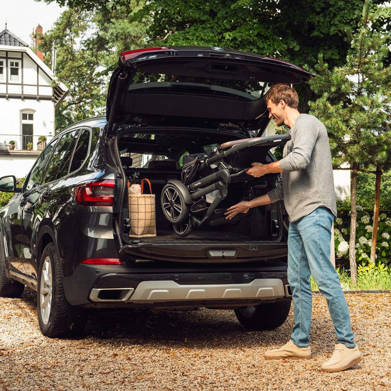 Ook aan ouders is gedacht. De verstelbare duwstang met lederlook accenten, soepele vering en robuuste all-terrain banden die stabiel en soepel rijden op zowel stadse stoepen als onverharde paden maken elke wandeling comfortabel en moeiteloos. De extra ruime boodschappenmand biedt volop ruimte voor al je dagelijkse benodigdheden. Het meegeleverde meerijdplankje klikt snel vast zonder adapters, klapt mee in en biedt een stabiele en comfortabele staanplek voor een ouder kindje ideaal bij vermoeide voetjes onderweg.