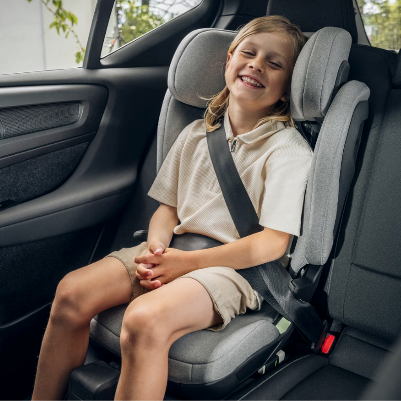 Het precieze gordelgeleidingssysteem positioneert de autogordel exact op de juiste plek: op heupen en schouder van je kind. Het bolle stoelontwerp voorkomt submarining (onderuit glijden onder de gordel) en zorgt voor een correcte, veilige zithouding tijdens de hele rit.